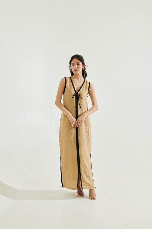 Beige & brown maxi dress